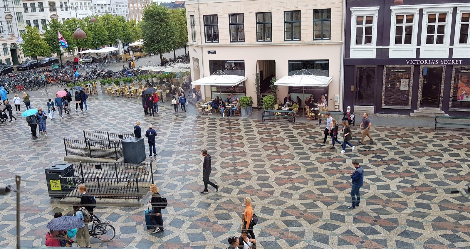 We had read about, and Siobán had told us about Strøget, one of the main pedestrian malls with an amazing tiled pattern running across one of the squares. While it is impressive at any time, anyone who has seen it will tell you that it is at ist most impressive when wet - and so, the gentle rain that we have half dodges for the last half hour or so has become . . . very opportune!Strøget is one of Europe's longest pedestrian streets with a wealth of shops, from budget-friendly chains to some of the world's most expensive brands. The stretch is 1.1 kms long and runs from City Hall Square (Rådhuspladsen) to Kongens Nytorv. While looking around the amazing architecture here, and photographing one of the stunning buildings, I realise that I am standing in front of none other than the Royal Copenhagen display and outlet centre. Joy of joys! After a thorough visit, I even selected a keepsake and had it freighted home - you'll have to come and visit to find out what it is!